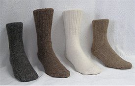 The fawn and the white sock in the middle are medium weight Alpaca blend socks suitable for skiing and lounging indoors.